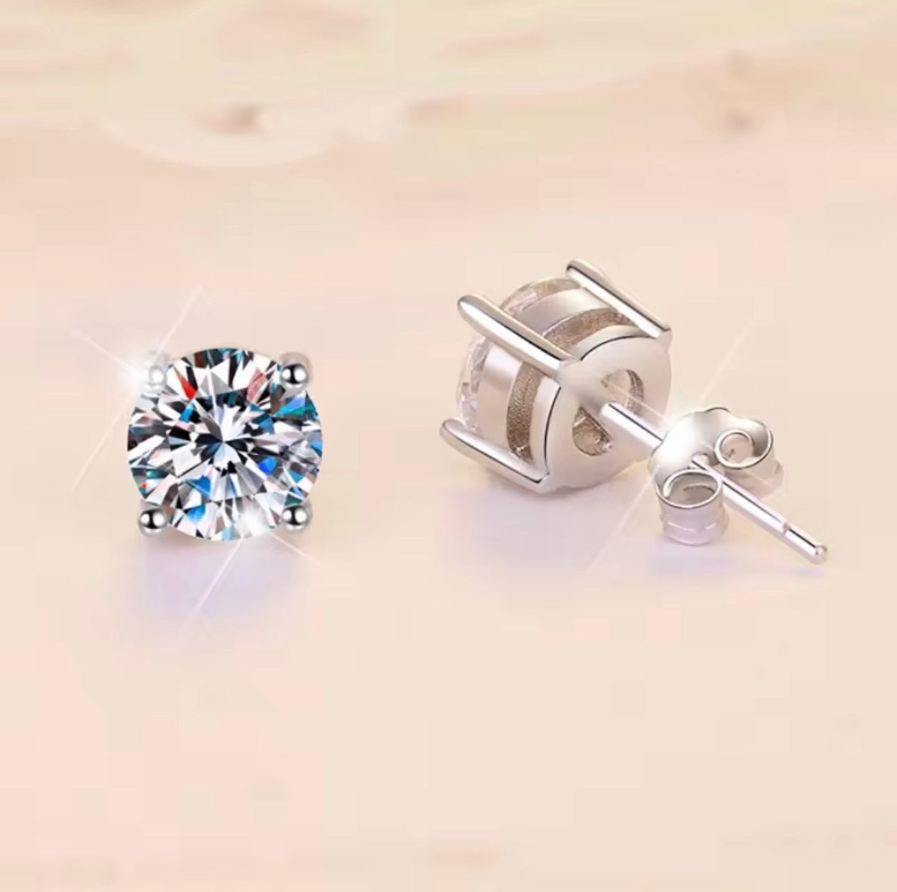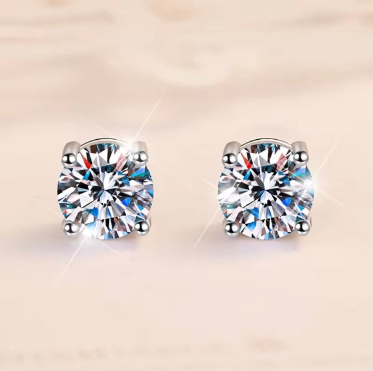 經典四爪鑲嵌 VVS1 仿真鑽石耳釘 | S925 純銀 | 單邊單顆設計