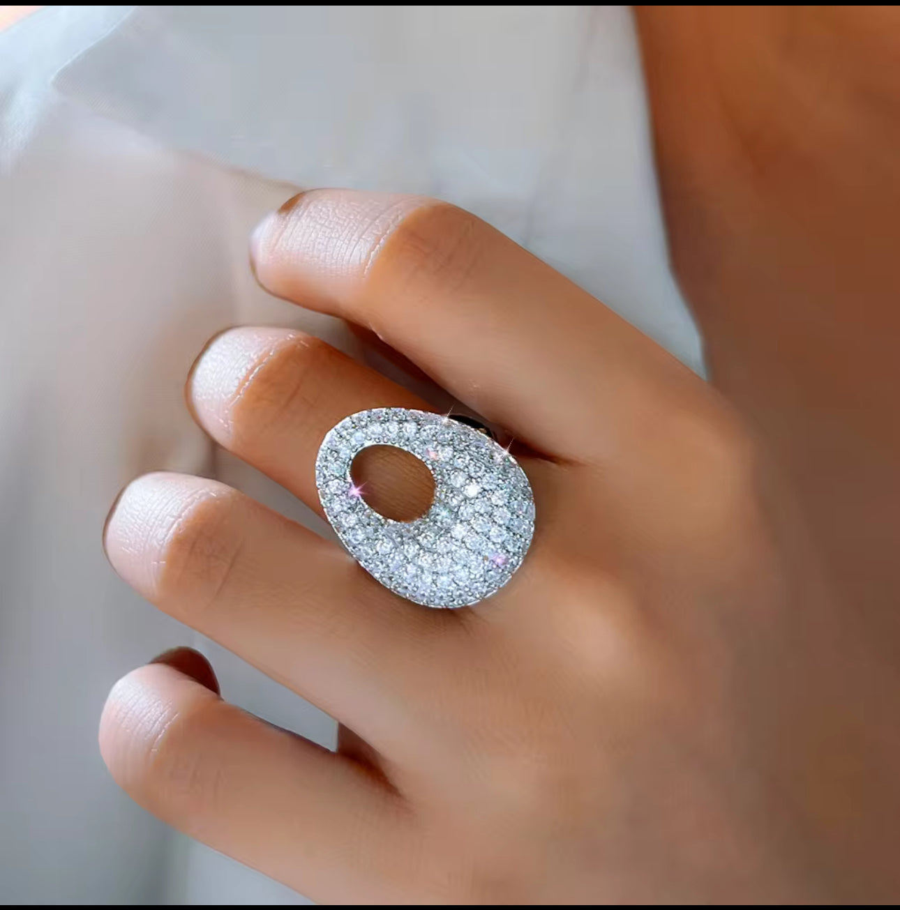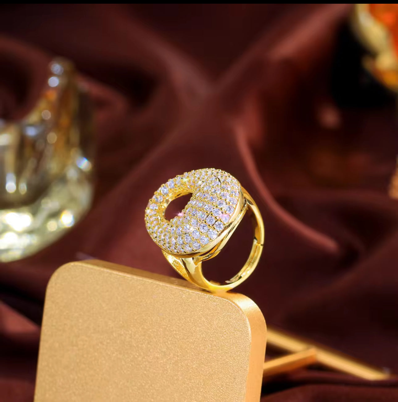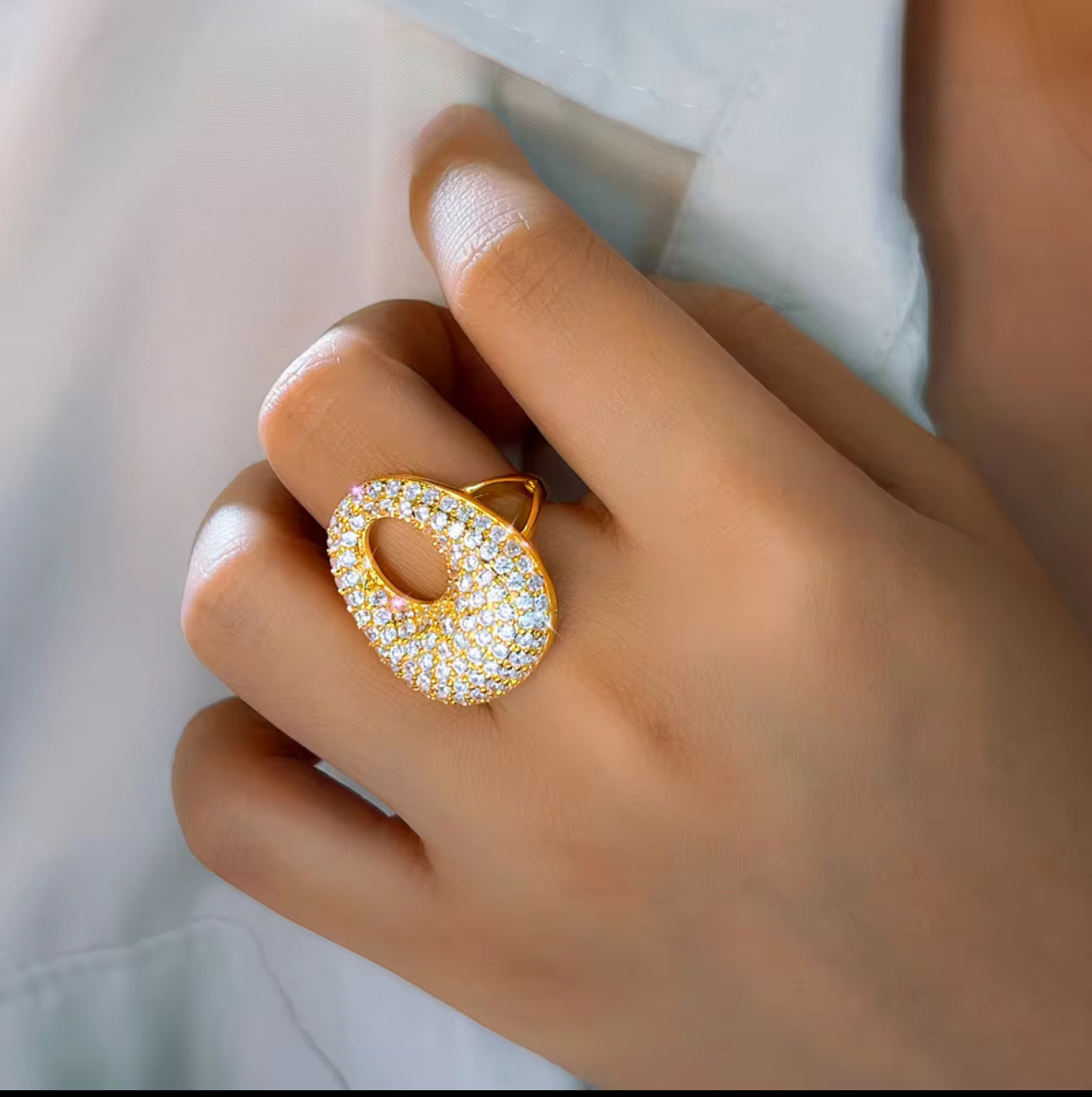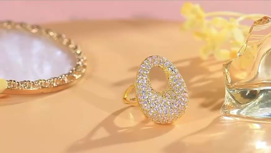 立方鋯石大蛋可調節戒指 | 金色銀色可選 | 時尚閃亮設計