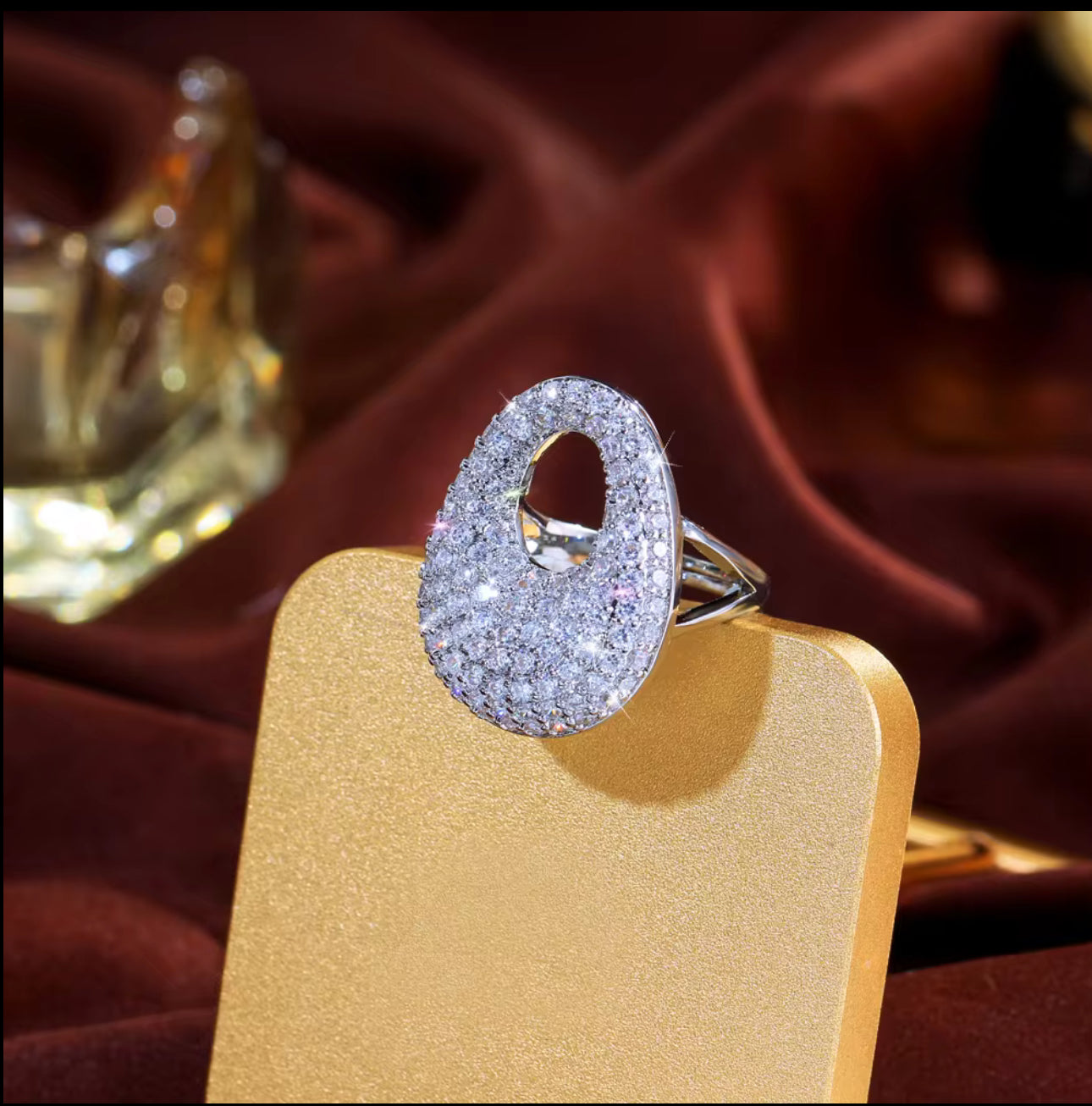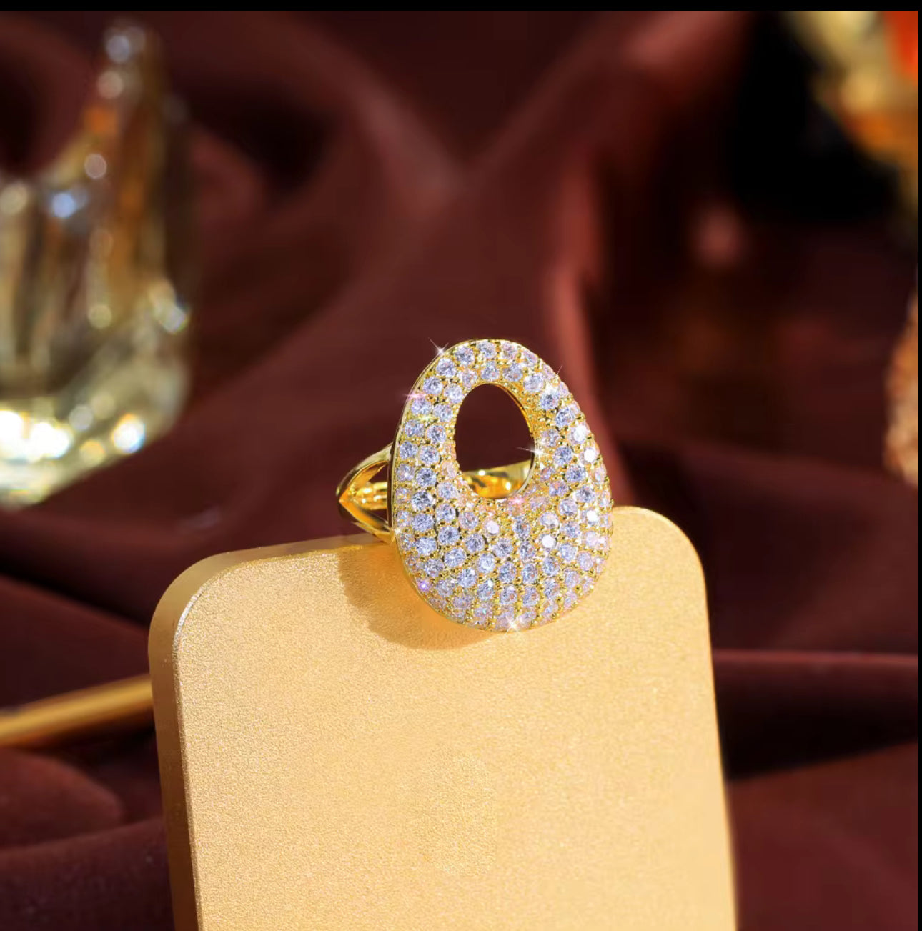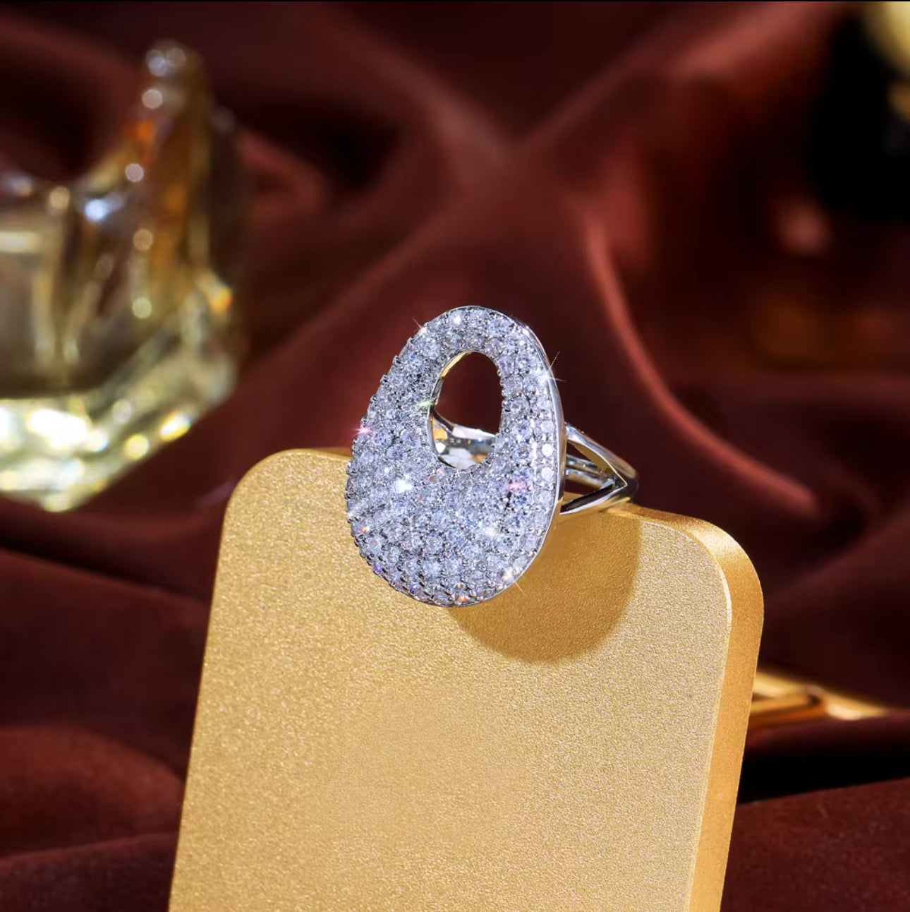立方鋯石大蛋可調節戒指 | 金色銀色可選 | 時尚閃亮設計