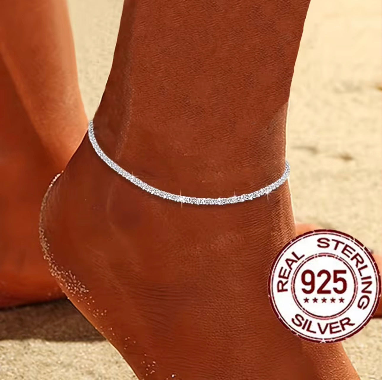 這款925純銀腳鏈以簡約設計融合彷真碎鑽點綴,為您的腳踝增添閃耀光彩。無論是海灘度假、夏日派對或日常穿搭,都能輕鬆展現您的獨特品味。