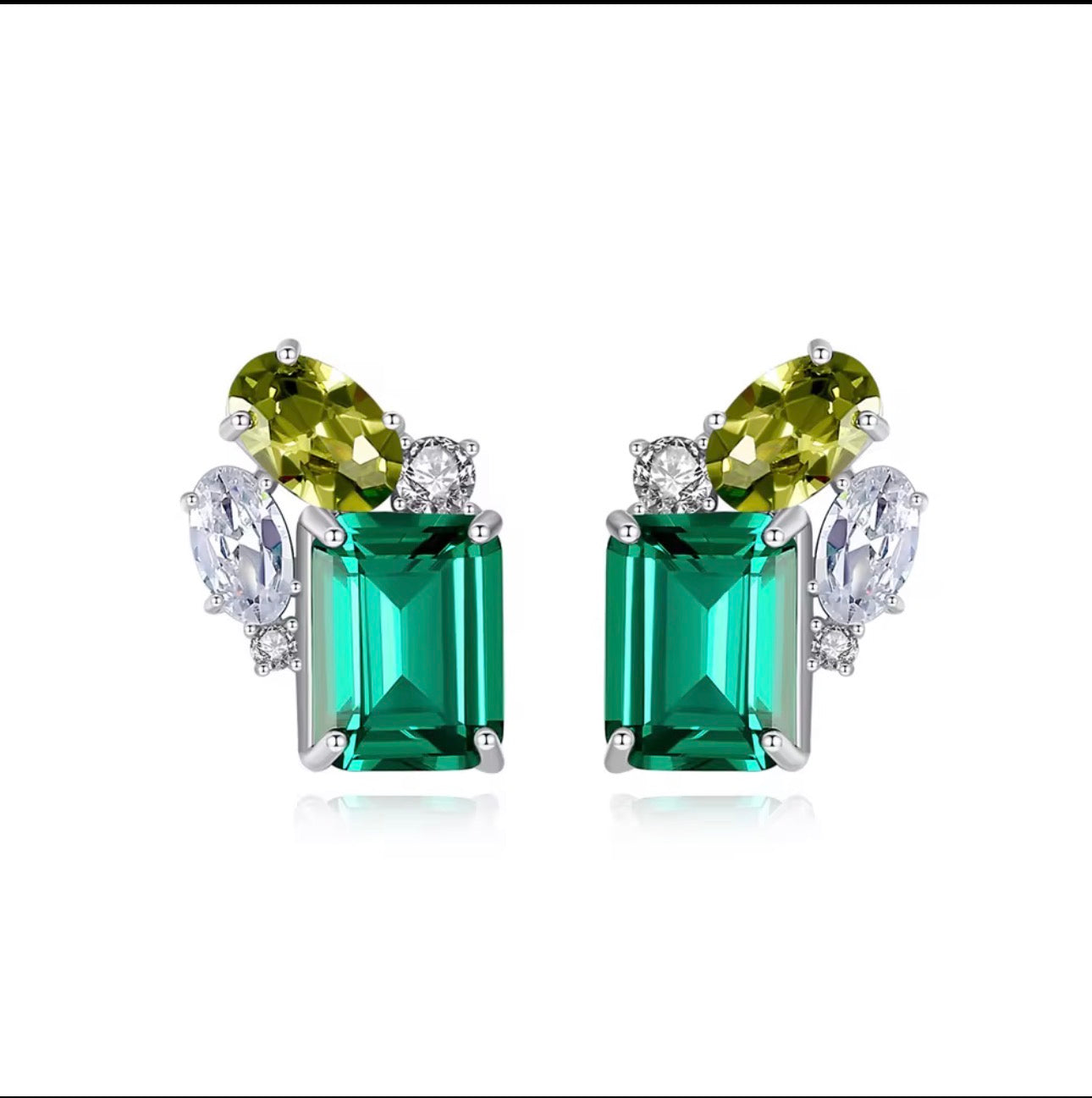 925純銀立方氧化鋯人造寶石翡翠綠色耳環
