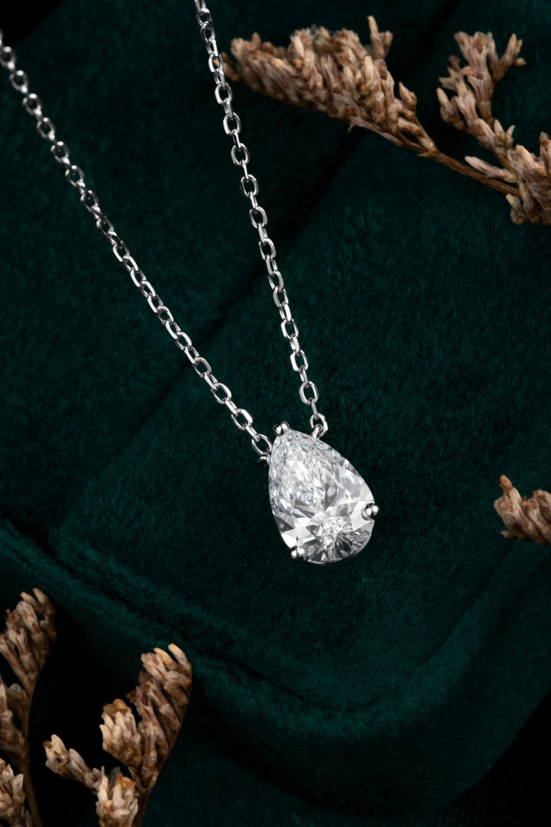1.042 克拉的主石成為項鍊的璀璨焦點,展現令人屏息的火彩與光芒。單顆主石設計簡約而奢華,讓鑽石的美麗成為唯一主角。2.21 克的金重提供穩固的結構,確保鑽石牢固鑲嵌。PT950 鉑金的純淨白色與培育鑽石完美融合,展現低調奢華的品味。
